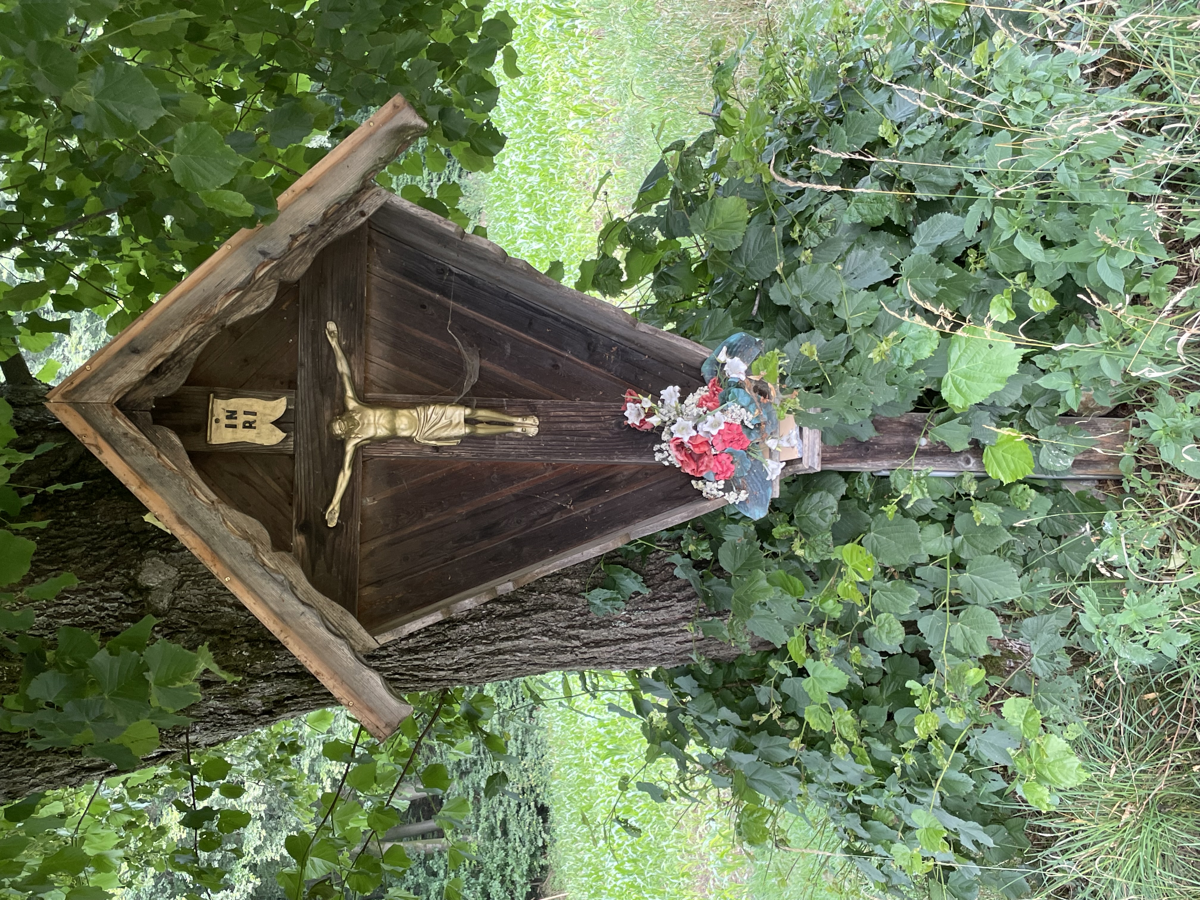 Ein eisernes Wegkreuz mit gußeisernem Corpus steht an der Straße Neuling - Wörglham kurz vor der Ortschaft und etwa 5m seitlich unter einer Linde. Der Eichensockel, an dem das Kreuz befestigt ist, trägt die Jahreszahl 1964. Wie berichtet wird, stand dort schon immer ein Kreuz:
