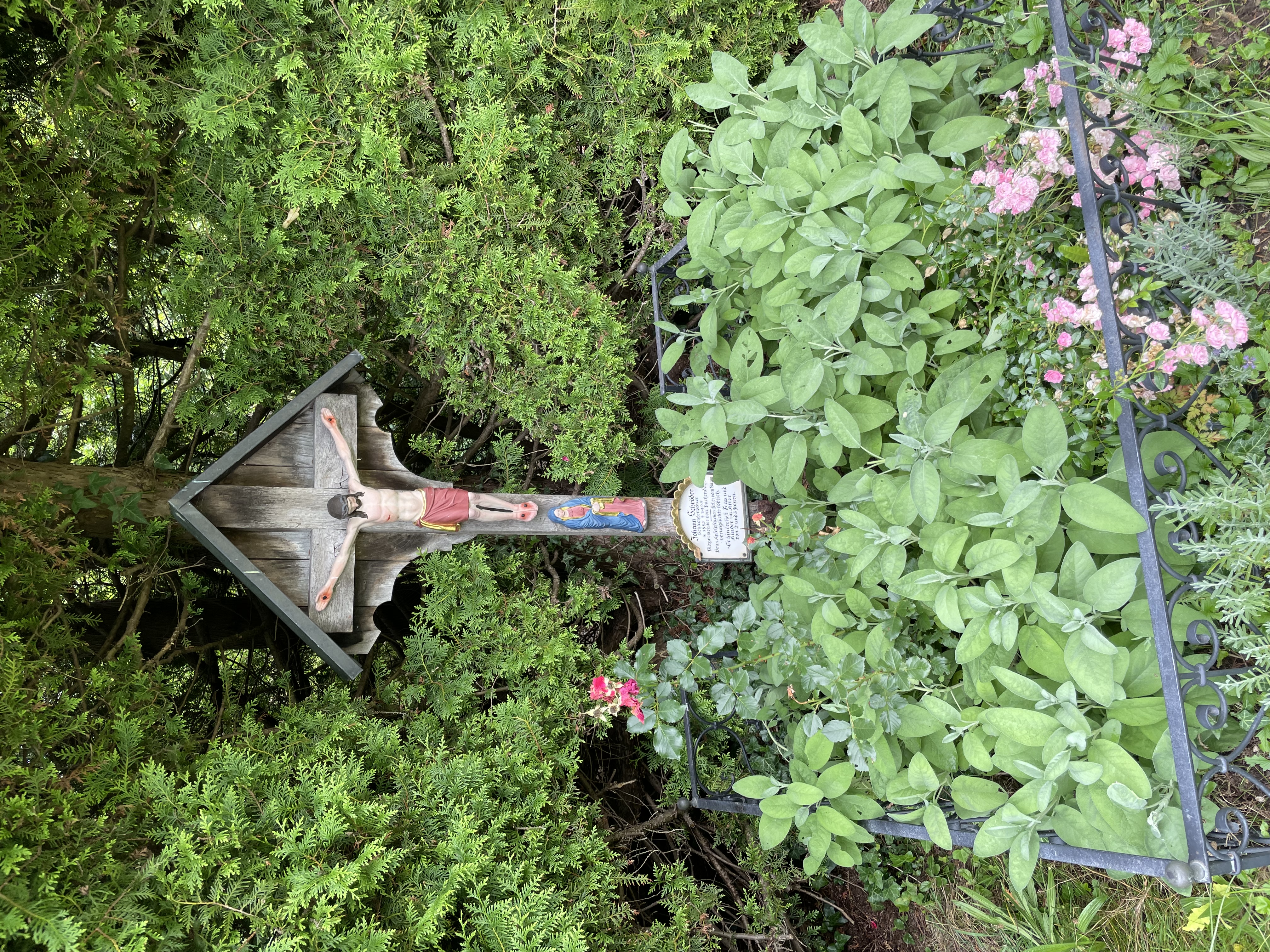 Im Obstgarten des Schlechteranwesens steht ein verwittertes Eichenkreuz, 70cm hoch mit Dach und gußeisernem Christus. Es erinnert an den tödlichen Unfall des Altbürgermeisters Johann Schröder am 12.10.1925 beim Apfelpflücken.
